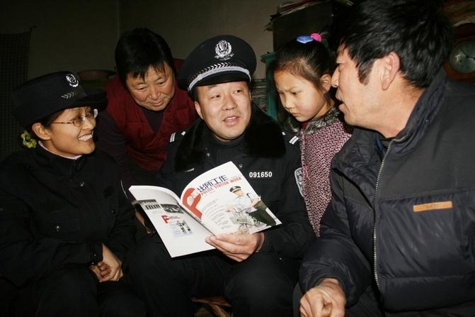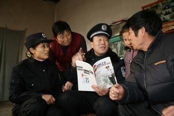1月10日,山东省无棣县公安局信阳派出所民警来到辖区车西村群众赵云生家中,为他讲解最新一期《派出所工作》上所刊登的内容,以案释法。近年来,该所把《派出所工作》作为服务群众、联系群众,提高群众法制意识的有效宣传载体,最大限度地发挥了法制报刊的宣传主阵地作用。