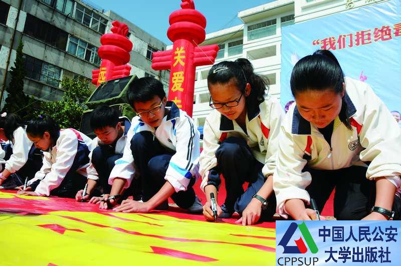“珍爱生命,远离毒品”,昆明市中学生在横幅上签上自己的名字