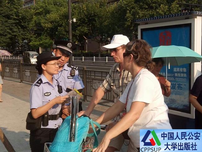民警倪明向美国夫妇宣传法律法规